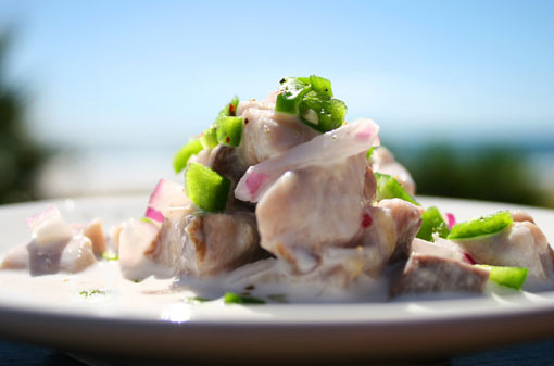 Marinate your fish in the lemon juice overnight in the fridge. The next day drain off the lemon juice, add the coconut cream, most of the onion and capsicum and mix. Serve on plates, garnish with the rest of the onion, capsicum and coriander. Season with salt and pepper.